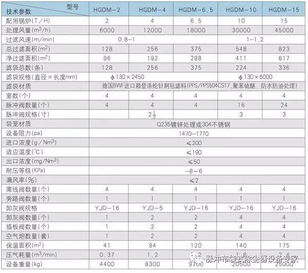 4、脈沖噴吹系統:反沖聯箱、電磁脈沖閥、承壓接頭、噴嘴管、支架等組成。HGDM-5.6以下規格為整箱清灰,其余規格在每個濾袋上部均有一根壓縮空氣噴嘴管。運行時,一般設定每一排濾袋每隔10S脈沖反吹清灰一次,定時啟動一次電磁閥,將脈沖反吹壓縮空氣噴入濾袋內進行清灰。