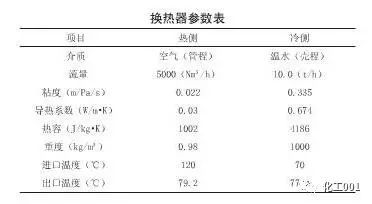 換熱器選用管殼立式換熱器1套,TS管殼式換熱器,總傳熱面積(以管中心徑計):110m2。參數如下表。