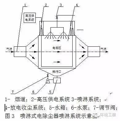 濕式電除塵技術(shù)與干法靜電除塵技術(shù)對(duì)粉塵捕集的原理基本相同,兩者結(jié)構(gòu)也類(lèi)似。所不同的是清灰方式,濕式除塵器取消了傳統(tǒng)的機(jī)械振打清灰方式,通過(guò)煙氣與水接觸使飛灰沉降。根據(jù)濕式除塵器原理和結(jié)構(gòu)的不同,有自激式除塵、麻石水膜除塵、噴淋式除塵三種主要形式。